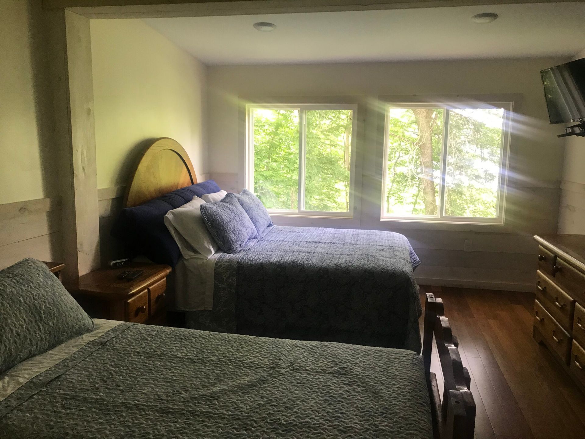New Listing/Newly remodeled and furnished! Enjoy over 400 feet of pristine private lakefront while staying at Bass Cove, a newly remodeled 5 bedroom 5 bathroom home. This ranch style home is appointed with hardwood floors throughout. Guests can relax in 2 living rooms, each with Cable TV. There is a newly painted full kitchen with adjoining dining area. Each bedroom, was planned to accommodate the varying needs of traveling families: There are two master bedroom suites: one with a king and and one with a queen and a twin. Each master suite features an en-suite bathroom, Cable TV and lake views. Additional bedrooms include one with bunk beds and a twin and en-suite bath (bathtub and shower), a bedroom with a queen and Cable TV, with an adjacent bath off the hallway, and a bedroom with a queen, and Cable TV, with an en-suite bath. On the lower level of the house, guests can enjoy a game room with ping-pong and air hockey. Additional household amenities include a laundry room, Central Air-conditioning, and wireless high speed internet access. Bass Cove boasts a variety of outdoor amenities. There is a furnished deck off the second living room with gas grill and seating area. The large yard offers a picnic table for bbq’s. The lakefront is complete with a dock, beach area, campfire pit and picnic table. There are kayaks and life jackets available for boating enjoyment and fishing poles for fishing off the dock. Team parties and pets are allowed. Bass Cove is the perfect choice for families traveling to our area that want to enjoy the activities that the lake has to offer!